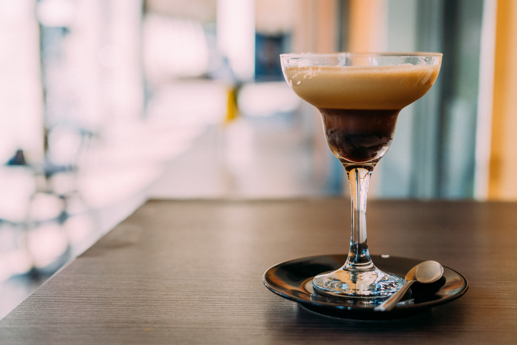 It’s made with a shot of espresso, ice and sugar, shaken together in a cocktail shaker.